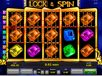 Не думайте, что онлайн-автомат Gemstone Jackpot – это классическая малофункциональная разработка фирмы Novomatic. На самом деле эта игра даст фору многим современным гаминаторам. В ней есть функция блокировки выигрышных символов. Как только вы встретите комбинацию на барабанах, знаки накроет клетка, а оставшиеся элементы сменятся на другие. Если снова появятся призовые символы, Lock & Spin повторится снова абсолютно бесплатно.