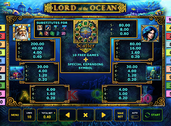 Игровой аппарат Lord Of The Ocean был разработан компанией Novomatic. Тематика и сюжет слота связаны с поисками морских сокровищ. Играть в него будет комфортно и новичкам, и опытным игрокам. Используйте возможности от администрации и разработчиков софта, запускайте онлайн игровые автоматы Вулкан. Каждый сорвет джек-пот в случае удачи. Джокер и бонусы помогут выиграть и забрать все призы видеослота Повелитель Океана.