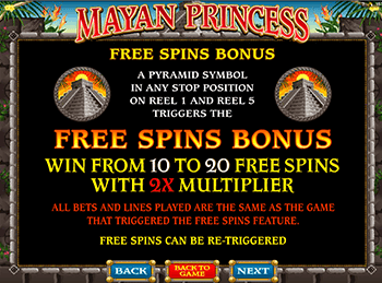 Сама принцесса Майя поможет пользователям выиграть отличный приз, размер которого 3 000 кредитов. А логотип Mayan Princess станет верным помощником в составлении новых цепочек, ведь он является Вайлдом. Только ему суждено заменять всех участников азартной игры. Более того, за пять Диких символов на одной активной линии полагается главная денежная выплата, которая превышает начальную ставку пользователя в 5 000 раз.